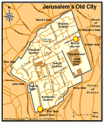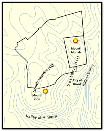 உண்மையில் இரண்டு எருசலேம் உள்ளது. ஒன்று மேலே உள்ள சீயோன் மலையிலும், மற்றொன்று அதற்கு அருகில் கீழே உள்ள மோரியா மலையிலும் உள்ளது.